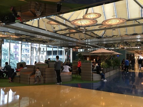 相連歺㕔的'綠地',除了草皮,植物都是如假包換,有大自然氣色。街景盡入眼簾,寬大的空間,舒緩了煩忙生活的壓力。